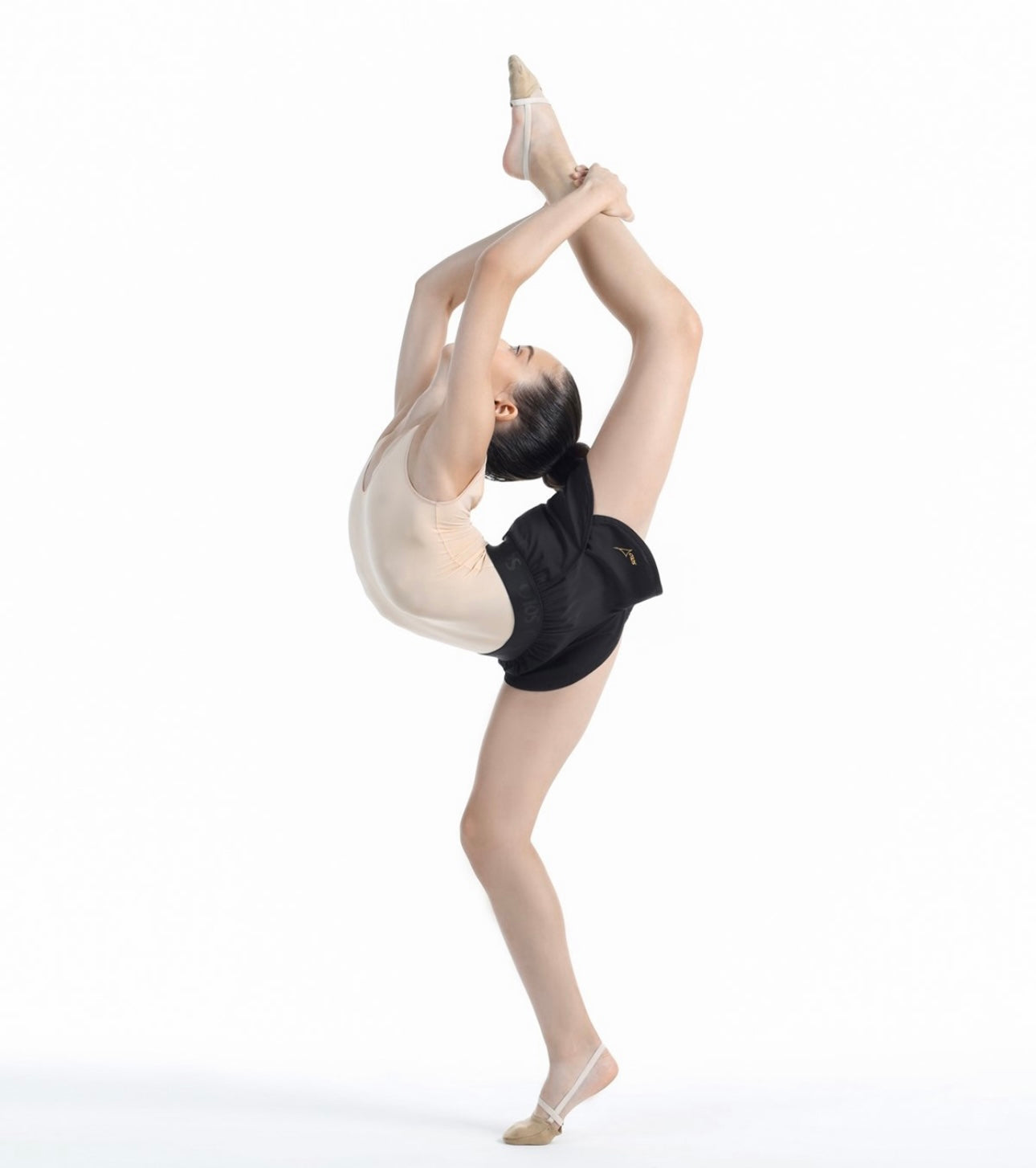 The Solo Double Shorts (Article RG769-107) are double layered athletic shorts designed for rhythmic gymnastics, dance and ballet. The design features loose, outer shorts and tight-fitting inner shorts for coverage and freedom of movement.